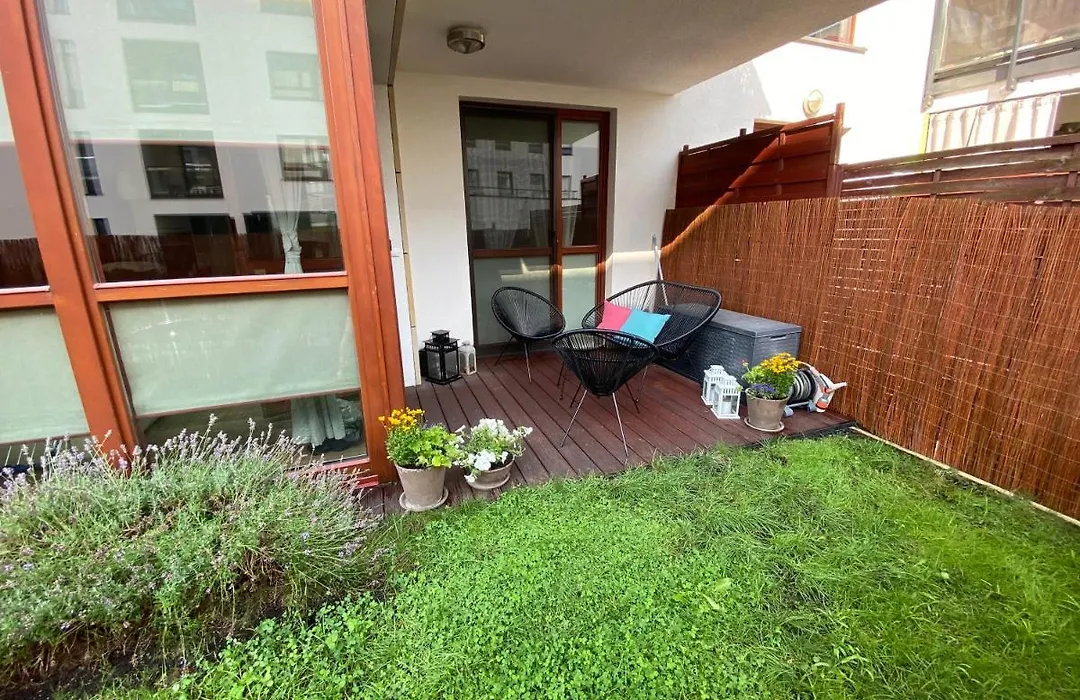 1-pokojowy Błękitny Apartament - Wilanów Warszawa zapewnia taras i znajduje się 2 km od Bramy pseudośredniowieczna z budynkiem. Apartament o powierzchni 55 m² zapewnia prywatny parking na terenie za 10 PLN dziennie.